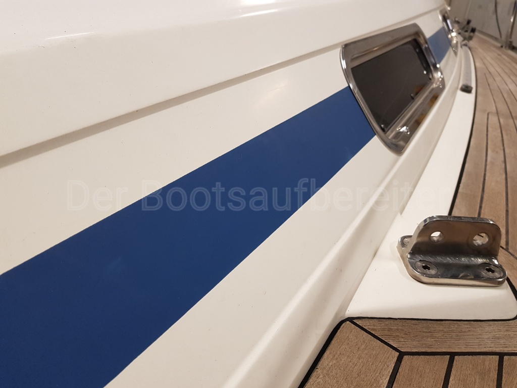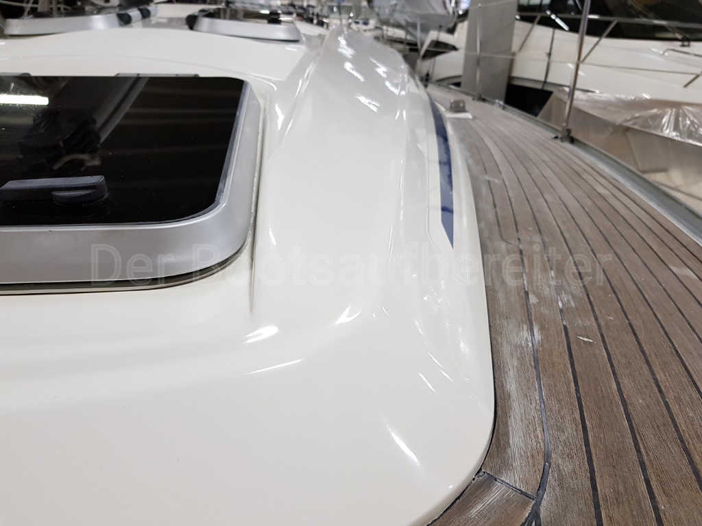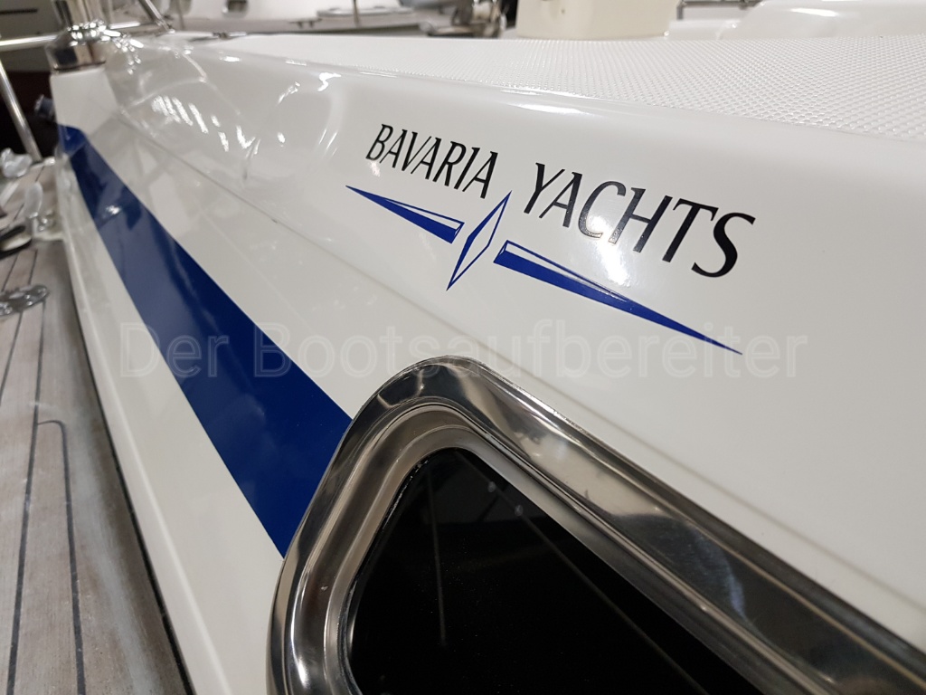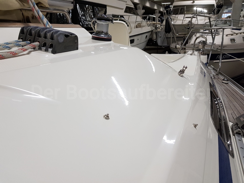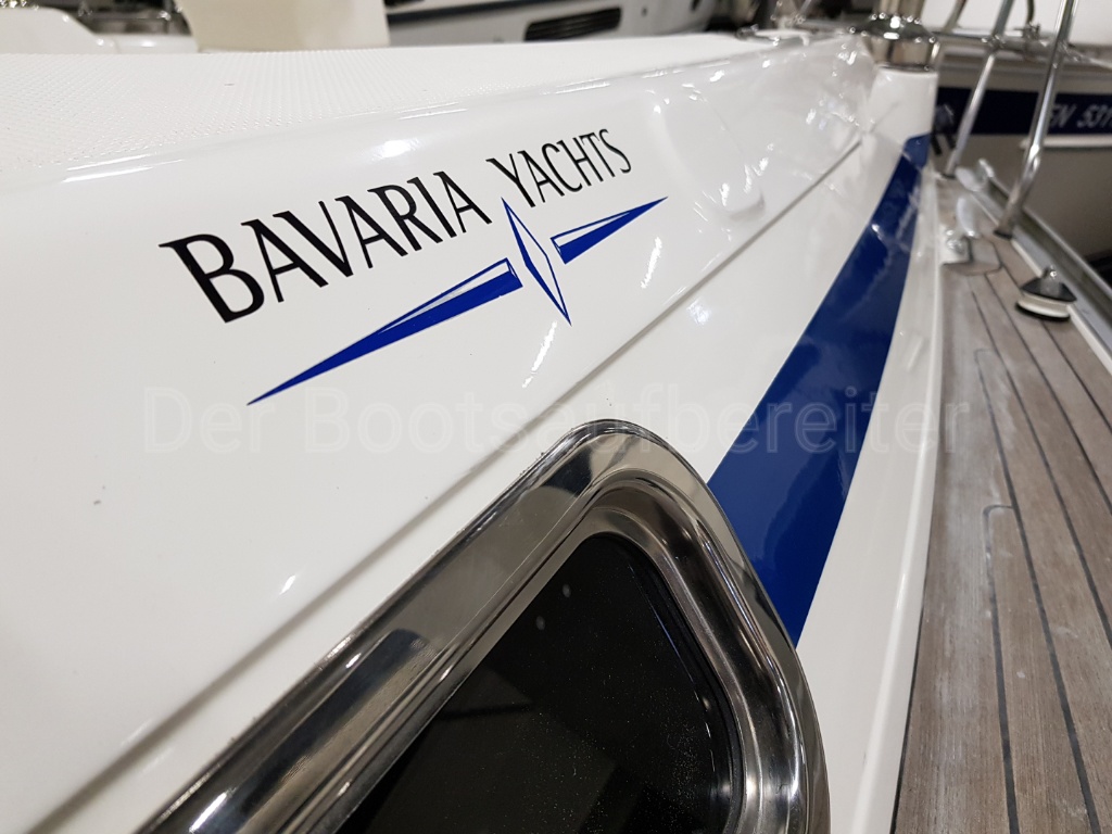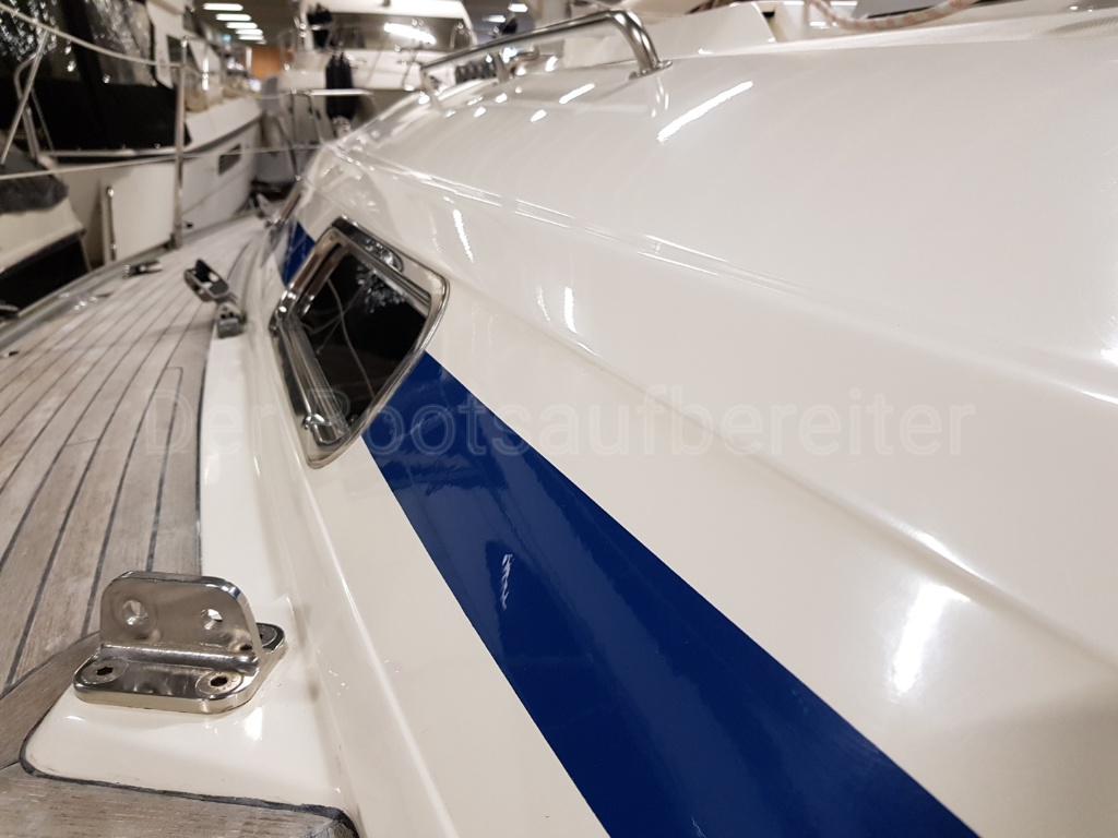Damit das Gelcoat wieder geschützt ist wurde die Bavaria mit der Langzeitversiegelung von NautiCare versiegelt.