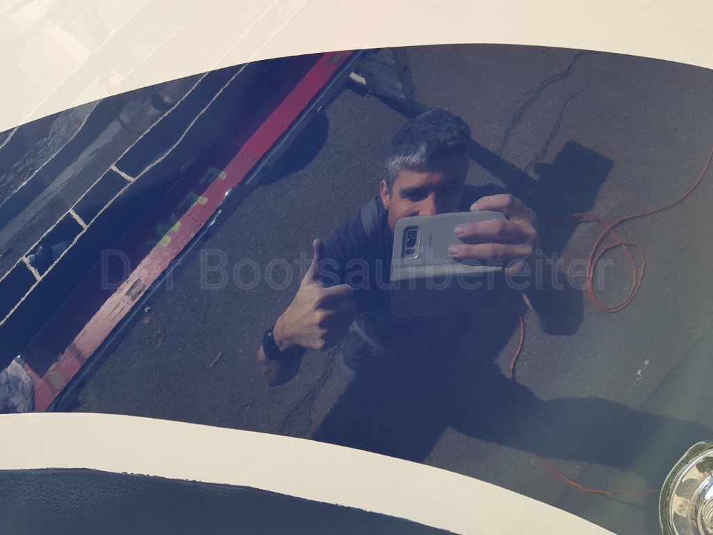 Die Bordwand wurde in zwei Schritten wieder aufpoliert. Zuerst mit einer mittleren Schleifpolitur. Zum Schluss kam noch eine Finish-Politur zum Einsatz.
