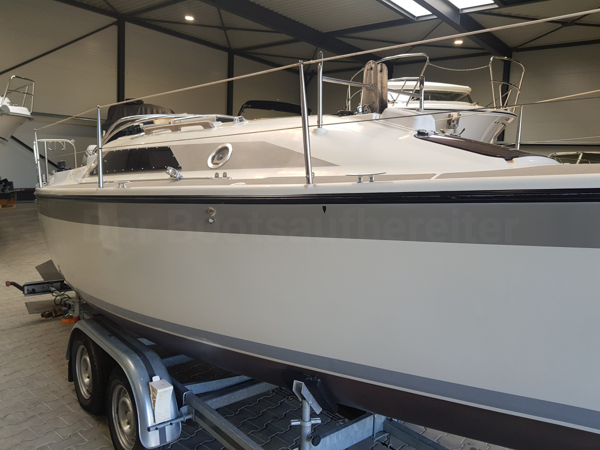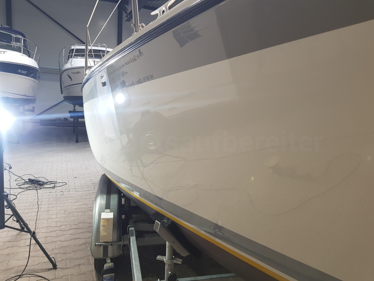 Die Dehlya 25 war leicht von den Witterungseinflüssen gezeichnet und sollte wieder für die Saison 2022 aufgefrischt werden. Ebenso sollten die leichten Kratzer beseitigt werden.