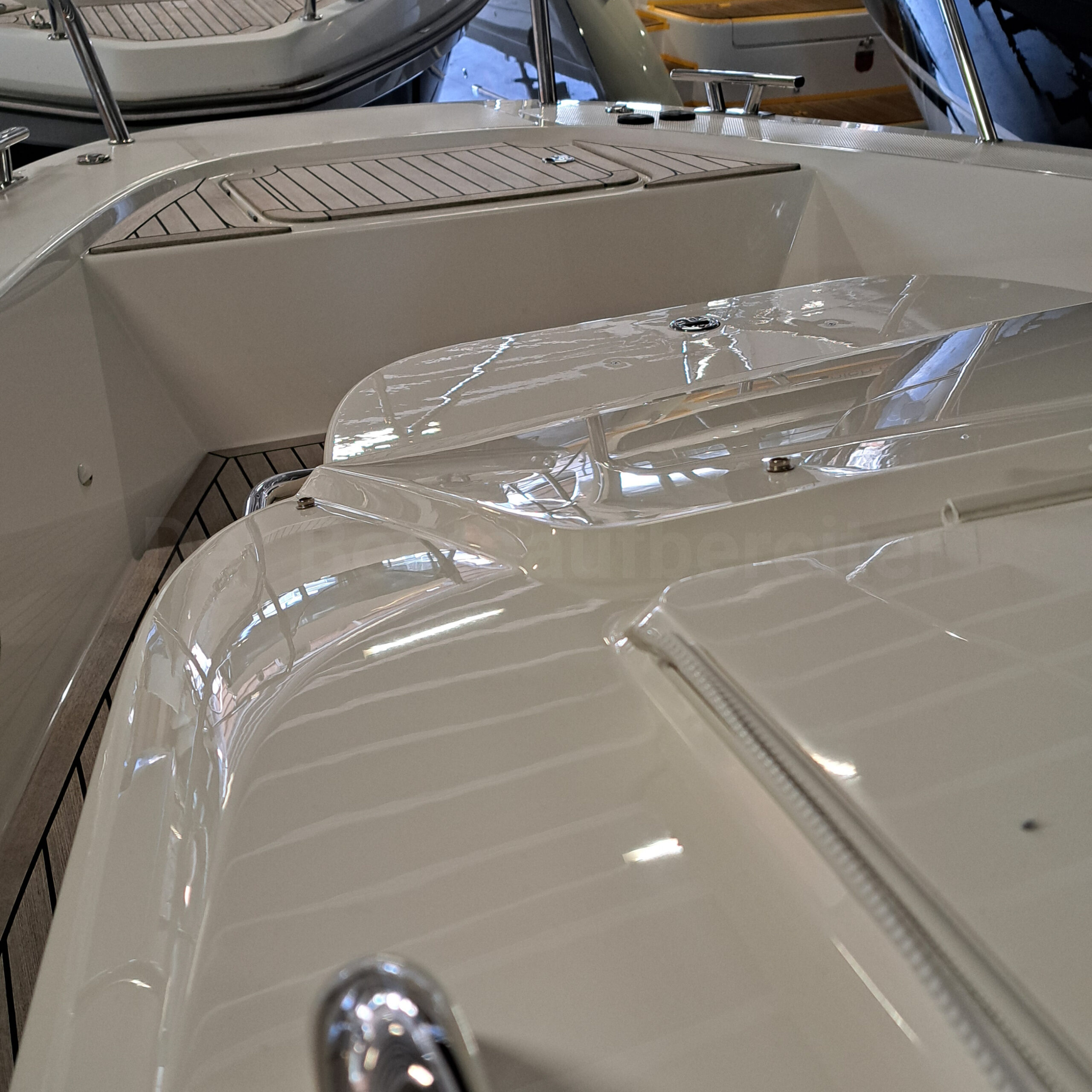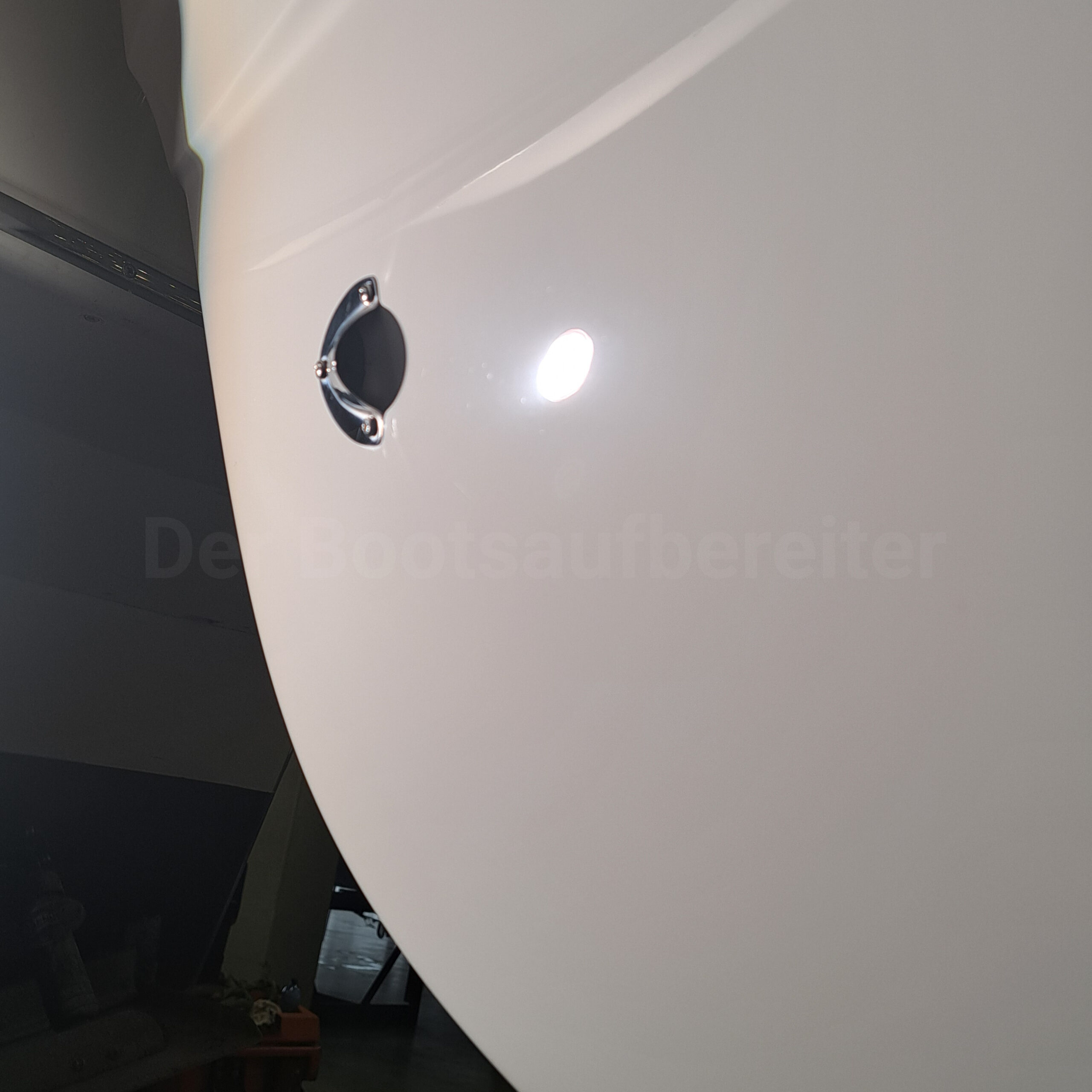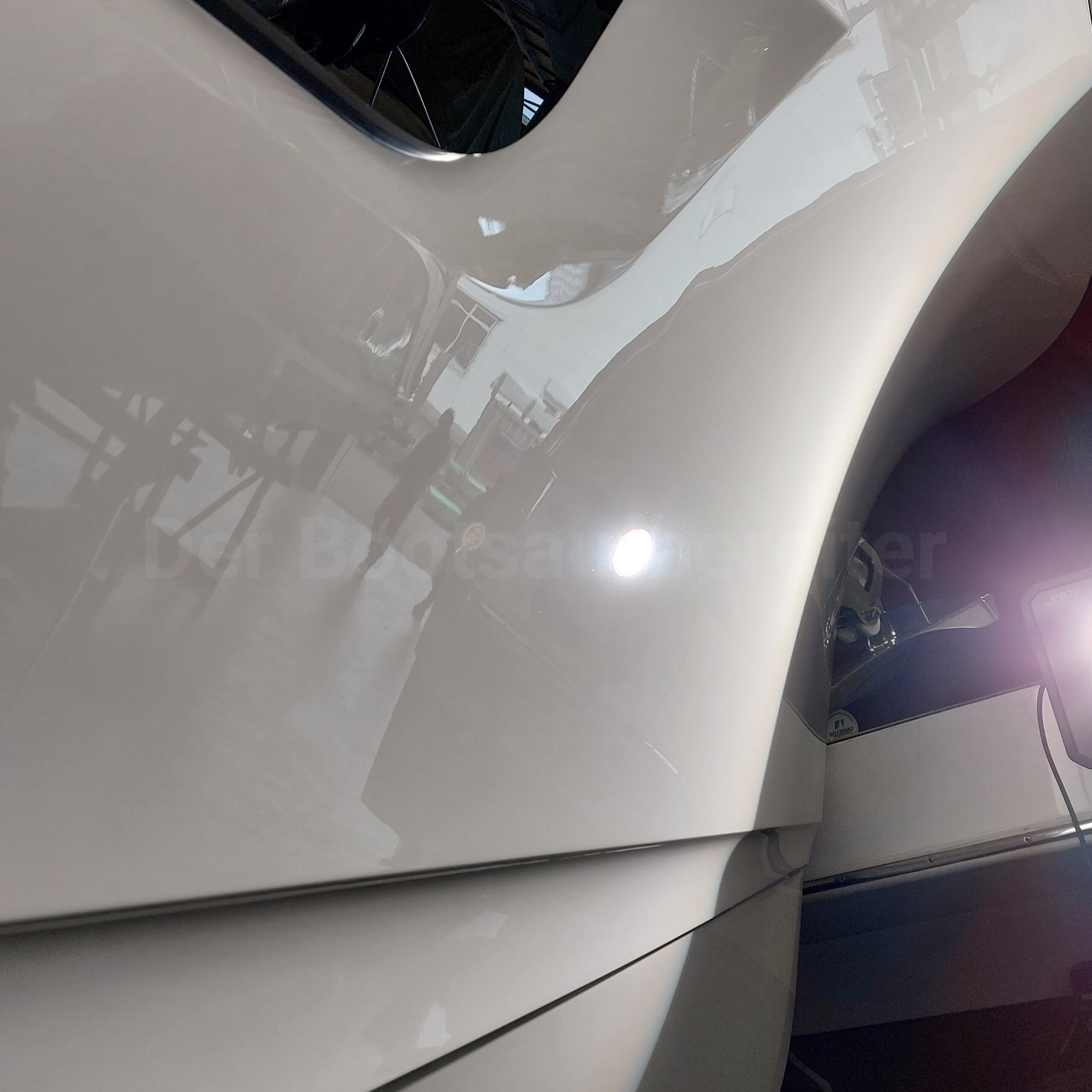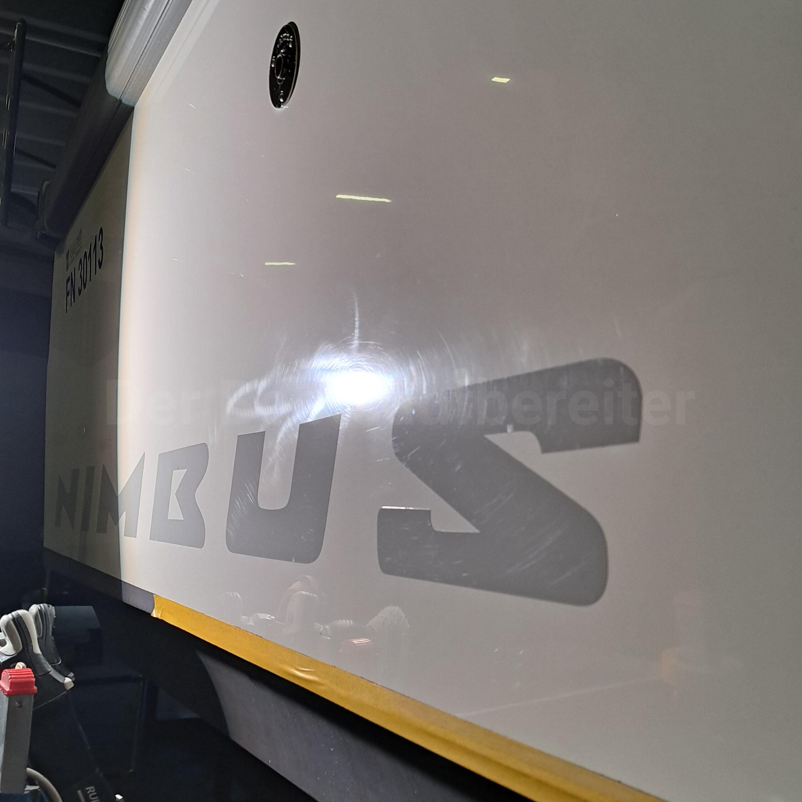 Diese Nimbus T11 ist zwar noch nicht alt, aber hat(te) aber ordentliche Spuren auf dem Gelcoat. Diese wollten beseitigt werden.
