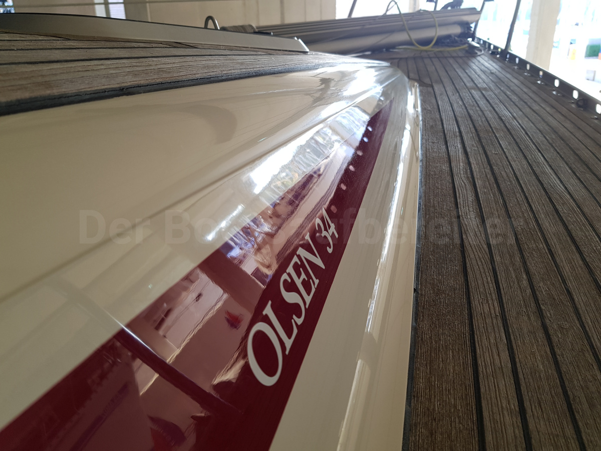Diese Olsen 34 war unterschiedlich stark ausgekreidet und mit diversen Kratzern versehen. Priorität war hier die Oberfläche wieder schön glatt zu polieren, da die Kratzer sehr tief sind.