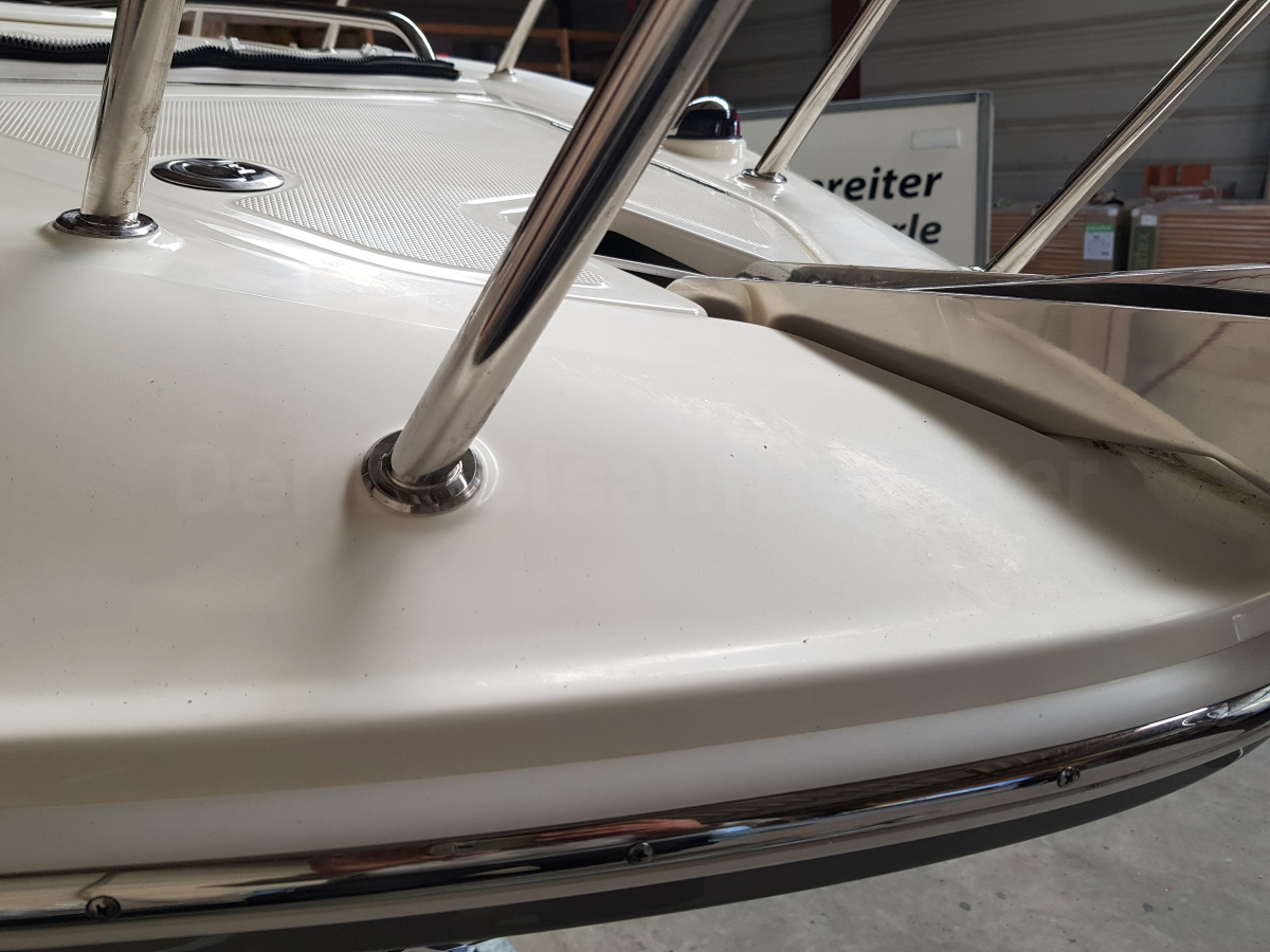 Die Sea Ray war grundsätzlich in einem guten Zustand. Beim genaueren Hinsehen waren im Rumpf jedoch etliche kreisrunde Kratzer in der Bordwand und in den Kunststofffenstern. Das Deck war von der Sonne dann durchaus stärker beeinflusst. Diese ganzen Spuren galt es zu beseitigen und grundsätzlich das Boot wieder für die Saison vor zu bereiten.