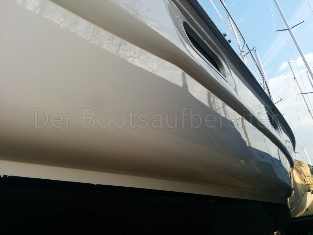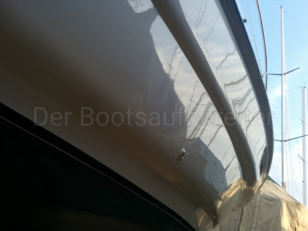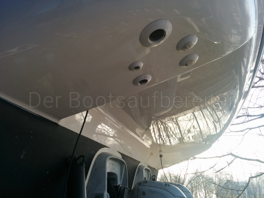 Um die Verwitterung der Sealine wieder zu entfernen wurden die glatten Flächen mit einer mittleren Schleifpolitur aufpoliert. Für den Endglanz kam noch eine Finish-Politur zum Einsatz.