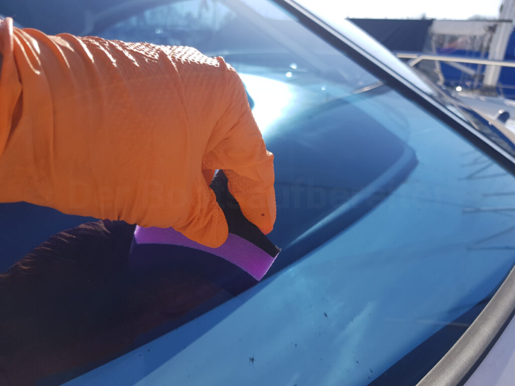 Auch die Windschutzscheibe wurde versiegelt. So bleiben die Kalkflecken aus und bei Fahrt herrscht immer gute Sicht.