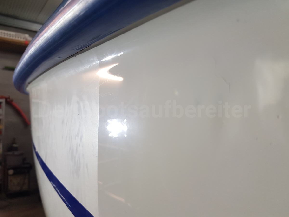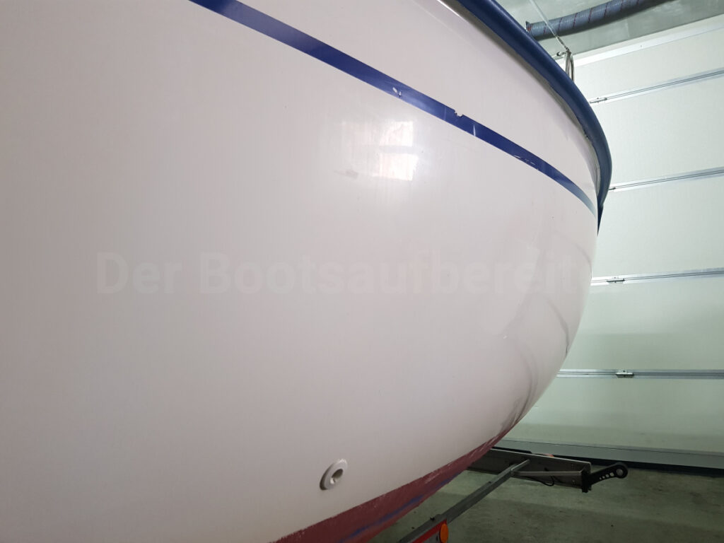 Diese Viko 20 war ordentlich gezeichnet von den Einflüssen der Natur. Der Eigner hat gut reagiert und rechtzeitig die Aufbereitung veranlasst, bevor scharfe Polituren eingesetzt werden müssen.