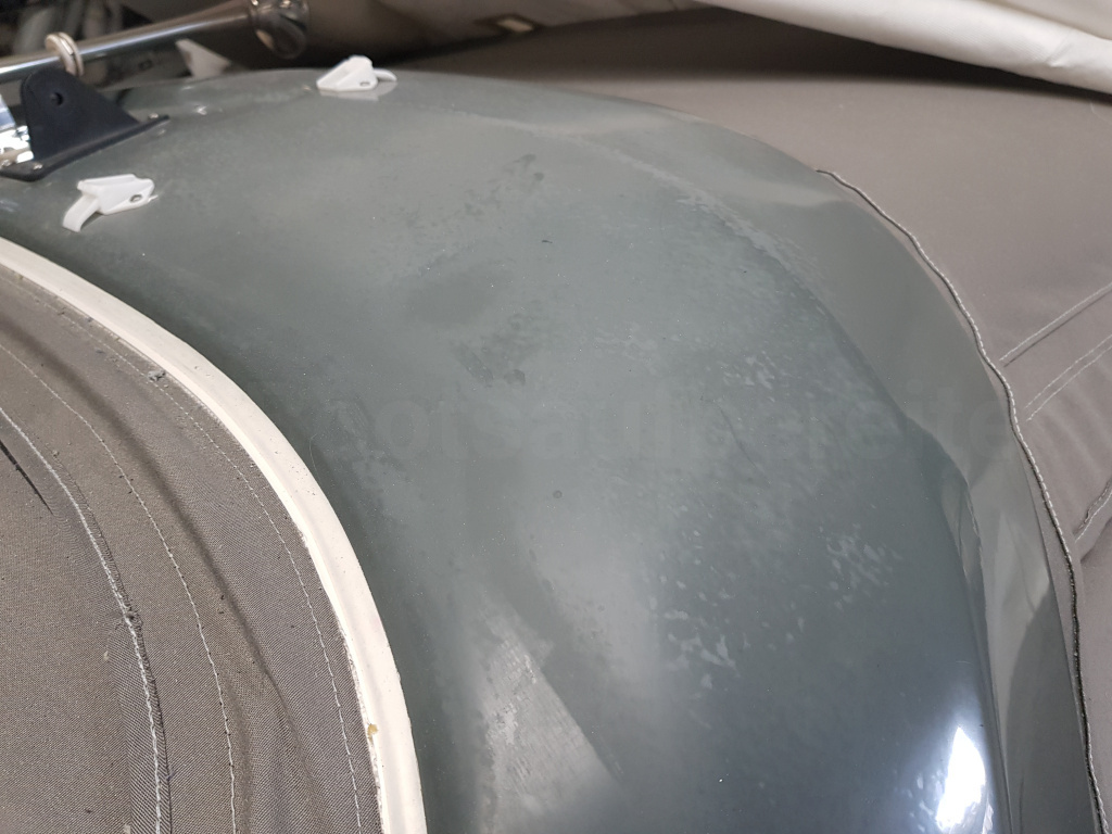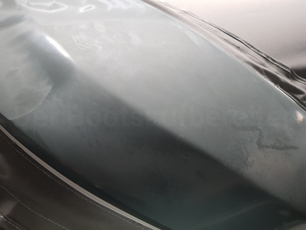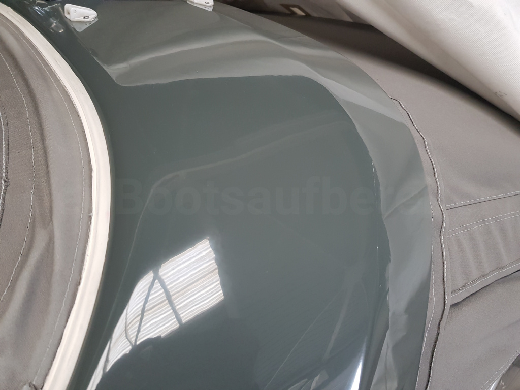 Poliert wurde in zwei Schritten, damit das Gelcoat wieder seinen ursprünglichen Glanz bekommt und das Gelcoat wieder geglättet ist.
