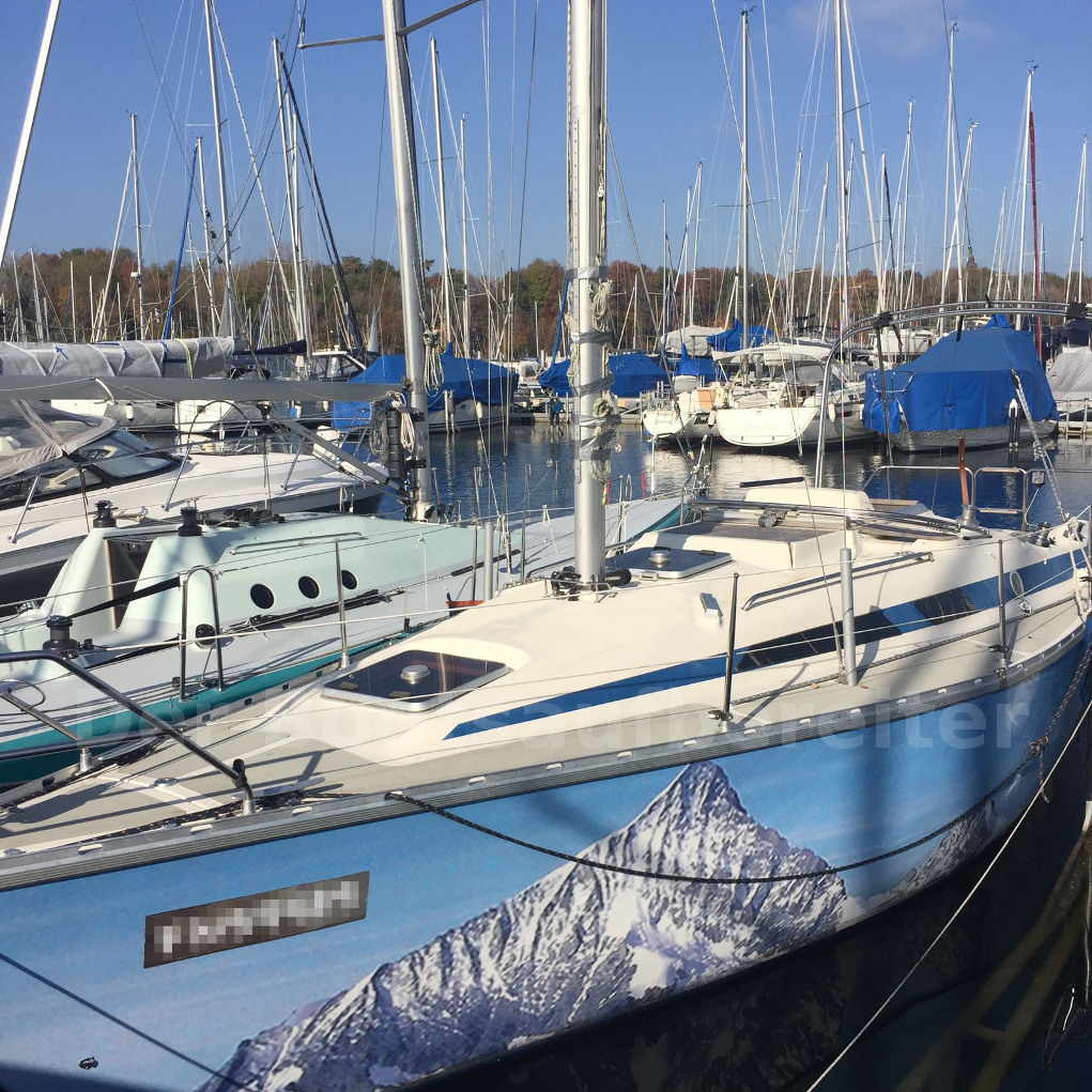 Die originalen Fenster bei dieser Bavaria 960 am Bodensee waren schon ordentlich verschossen und völlig rissig geworden.