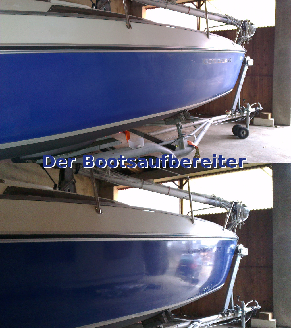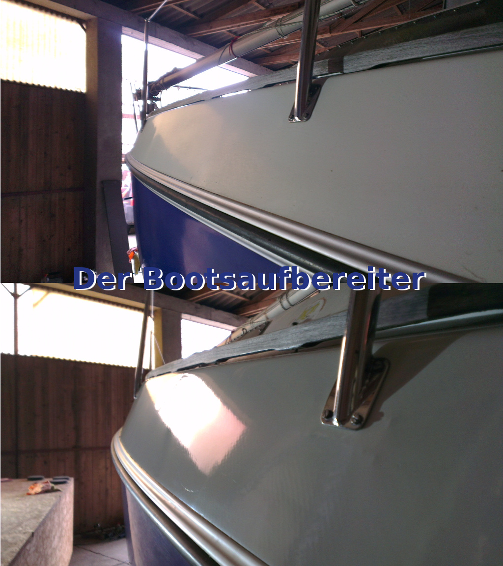 Im zweiten Schritt wurde mit einer mittleren Schleifpolitur das Gelcoat wieder geglättet.