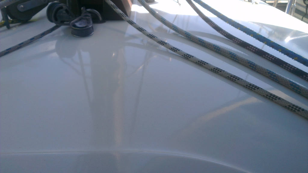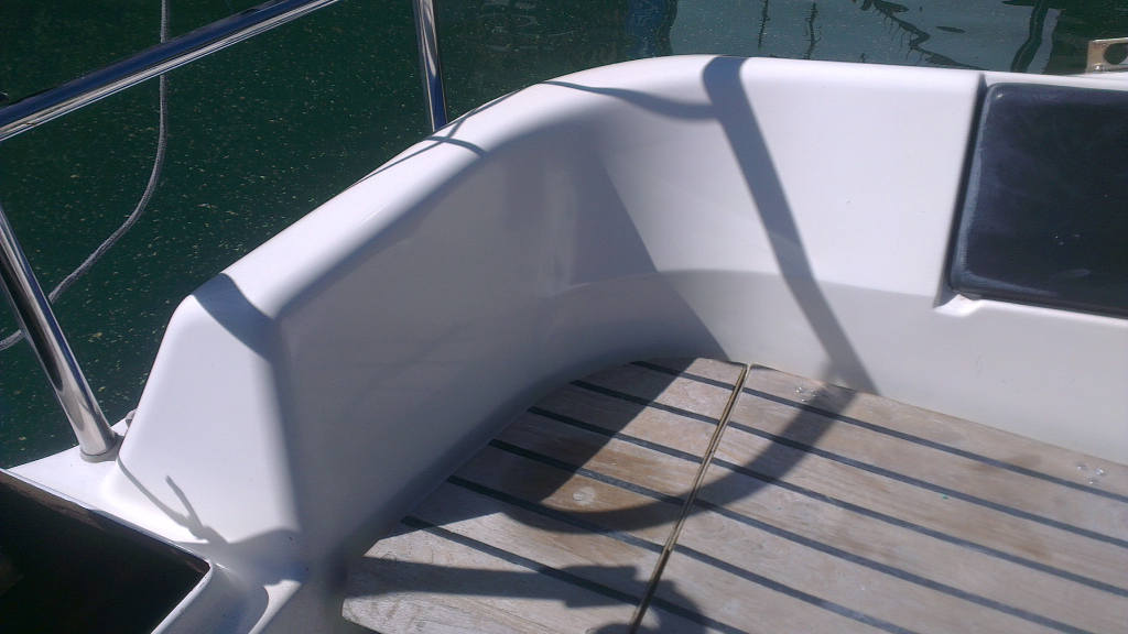 Der Schutz des Gelcoats erfolgte mit der Langzeitversiegelung von NautiCare. Sie schützt das frisch polierte Gelcoat nun wieder vor den Witterungseinflüssen und frischem Dreck.