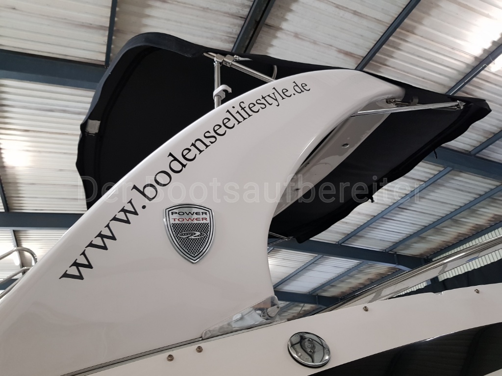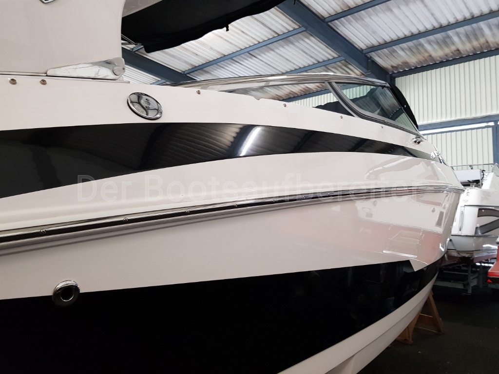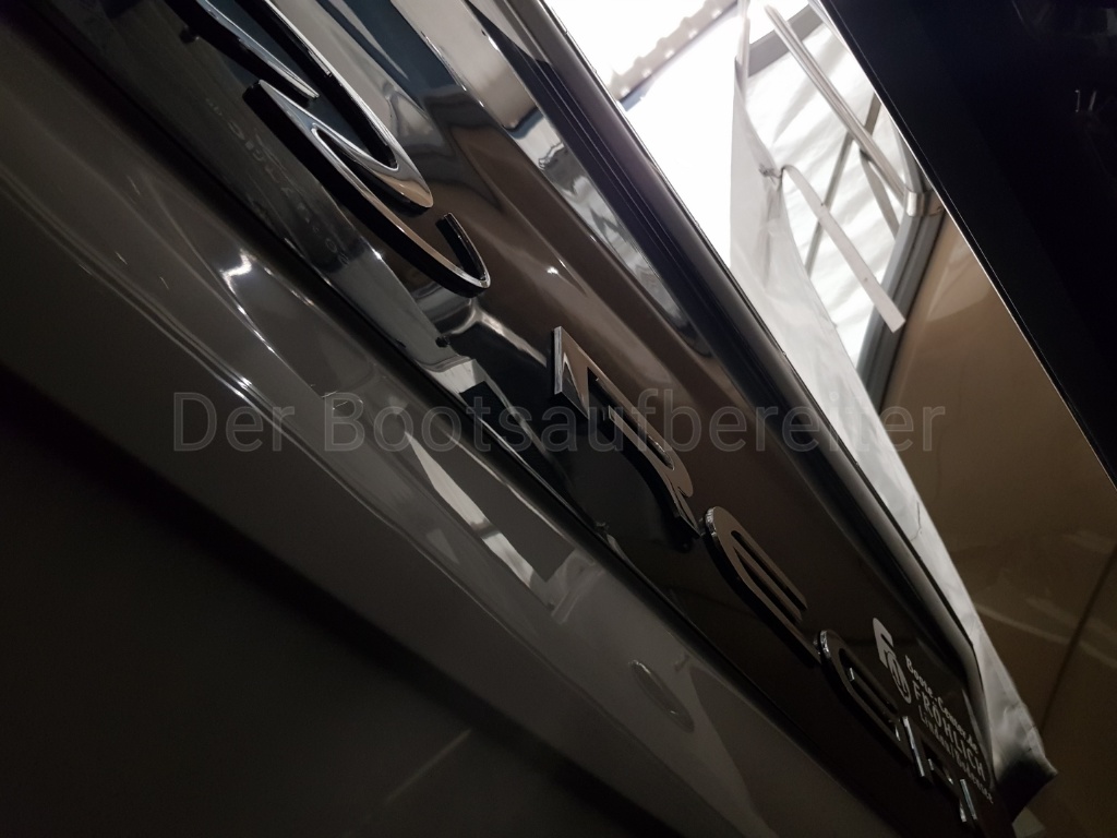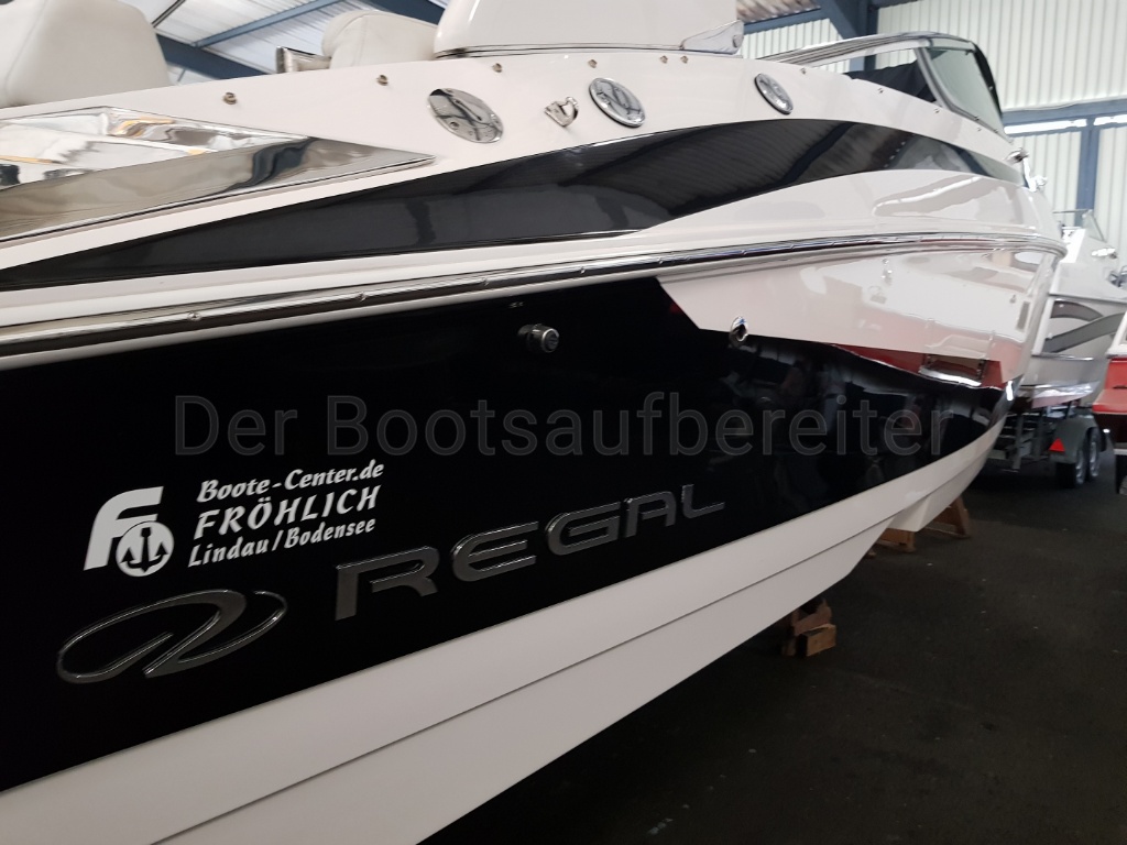 Damit das Gelcoat wieder geschützt ist wurde die Regal mit der Langzeitversiegelung von NautiCare versiegelt.