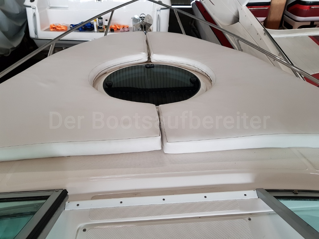 Diese Regal 2550 wurde außen wie innen komplett gereinigt. Dazu zählt der Rumpf, das Deck, die Polster, das Cockpit (mit Teppich) und die Kajüte.